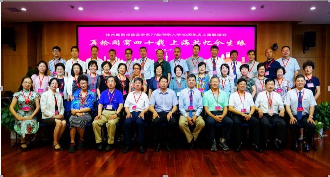 7月7日上午,受上海校友会郎铁成会长的邀请,邱洪斌书记一行参加了佳木斯大学原佳木斯医学院医学系78级同学入学40周年“再拾同窗四十载,上海共忆今生缘”主题联谊会,来自海内外近50名同学参加了此次活动。邱洪斌书记代表母校向他们送去了诚挚的祝福,并同全体与会校友合影留念。