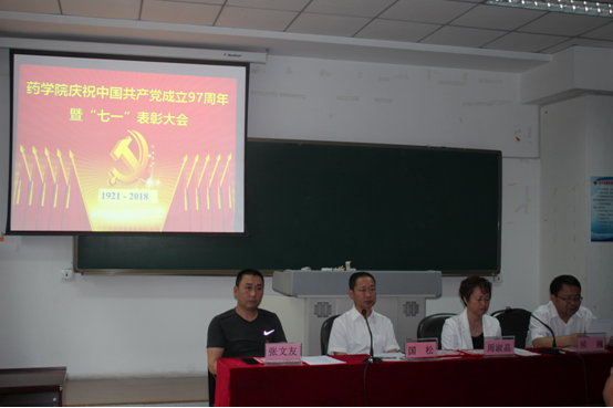 6月27日下午,药学院庆祝中国共产党成立97周年暨“七一”“先优”表彰大会在1D12-210教室召开。全体教工党员、学生党员出席大会。党委副书记、院长周淑晶主持大会。