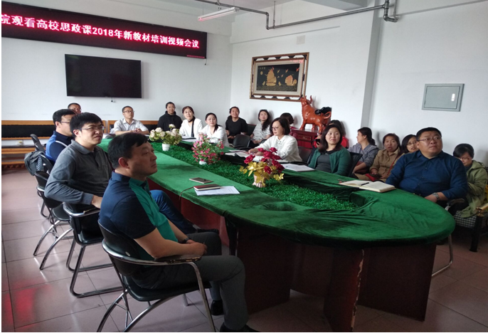 5月14日下午,由中宣部、教育部主办的高校思想政治理论课2018年版教材使用培训班开班仪式在北京举行,集中部署中央实施马克思主义理论研究和建设工程重点教材《马克思主义基本原理概论》《毛泽东思想和中国特色社会主义理论体系概论》《中国近现代史纲要》《思想道德修养与法律基础》2018年版教材的使用工作并开展网络培训。教育部党组书记、部长陈宝生出席会议并讲话,教育部党组成员、副部长朱之文主持会议,教育部党组成员、部长助理、教材局局长郑富芝,中宣部理论局副局长杨宇军出席会议。我校设立了网络直播培训分会场,校党委常委、宣传统战部部长孙文生出席分会场会议,马克思主义学院党政领导及全体思政课教师共计50余人观看了会议实况。