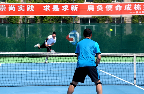 此次网球争霸赛共有来自国家电网双鸭山电厂网球协会、黑龙江五一汽贸公司、中国农业发展银行等40余名网球爱好者参加。比赛分为中青组和青年组两个组别,共设男子双打、女子双打、混合双打三个项目。最终,我校选手分别获得中青组男子双打、混合双打;青年组男子双打、女子双打第一名的好成绩。