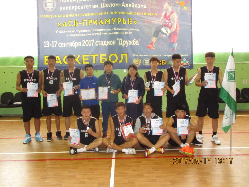 开幕式上,肖洛姆阿列赫姆国立大学校长热情欢迎我校师生,并就我校篮球运动的开展和普及与师生进行了交流。在随后的与俄罗斯太平洋国立大学比赛中,我校篮球队以77:71的成绩取得胜利。在引体向上、射击、立定跳远、投掷手榴弹、100米、3000米六项综合素质比赛中,由中方三支队伍、俄方三支队伍共计六支队伍,其中我校运动员取得了综合身体素质测试第二名的优异成绩。同时,我校学生还获篮球技能比赛第四名的好成绩,万海英获得优秀领队、于东洋获得优秀教练员、刘思搏同学素质测试获得第三名、贾天宇同学获得最佳投篮手、李明哲同学获得最佳优秀运动员的称号。