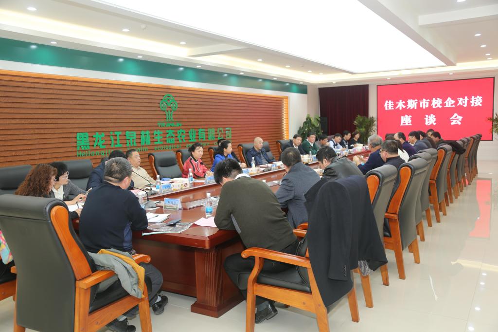 为加强学校与企业之间的合作,发挥校企双方优势,加强相互协作,11月2日下午,由佳木斯市科技局牵头组织的佳木斯市校企对接洽谈会在黑龙江泉林生态农业有限公司召开。佳木斯市副市长田雨及市科技局、工信委主要负责人,我校党委书记邱洪斌、校长孟上九及党(校)办、科技处、材料科学与工程学院、药学院、生命科学学院、信息电子技术学院、机械工程学院等有关领导与专家,黑龙江泉林生态农业有限公司、佳木斯电机股份有限公司等近10家企业代表参加了座谈会。田雨主持座谈会。