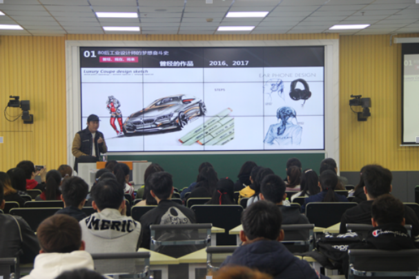 4月16日,应机械工程学院邀请,国内著名设计师、工业设计手绘大师罗剑来我校讲学。机械工程学院副院长臧克江、工业设计专业全体教师和本科生参加了报告会。