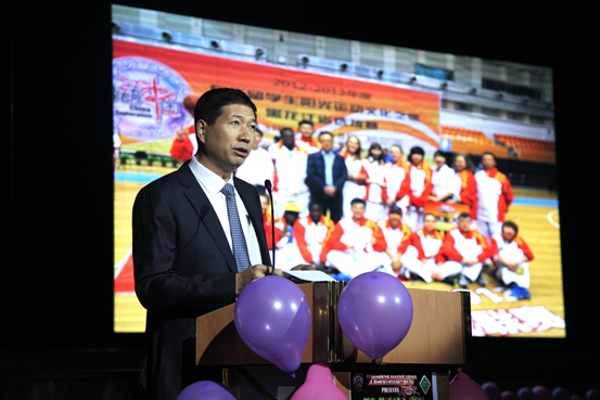 晚会期间还进行了颁奖环节,对在对学校十项体育竞赛中国际教育学院学生勇夺排球比赛、羽毛球比赛、足球比赛三项冠军的队员,学院党总支书记王志海代表学院为他们颁发了奖牌及证书,并对留学生们在2015年学校各项体育赛事中所取得的优异成绩表示祝贺。