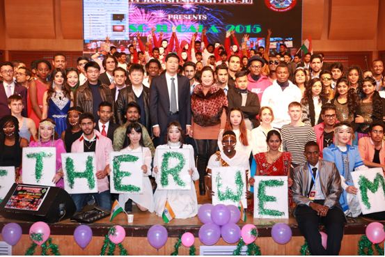 11月22日下午3时,以“友好,友爱,友情,友谊”为主题的2015留学生文艺晚会在音乐厅激情上演。