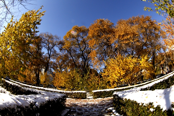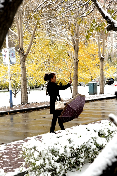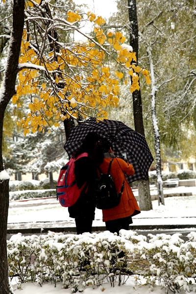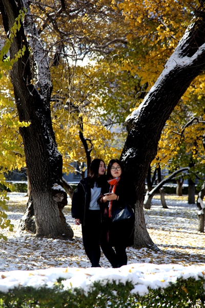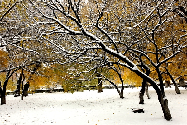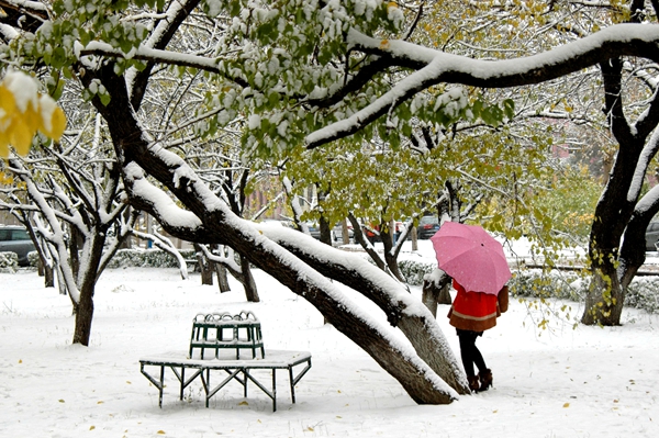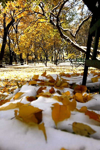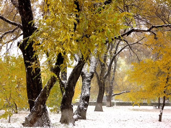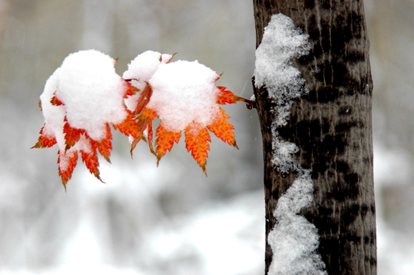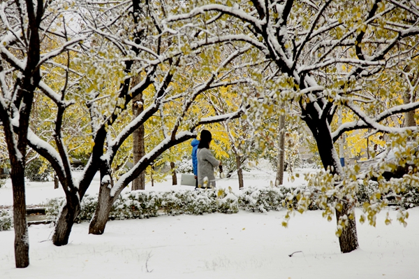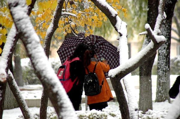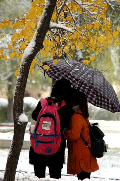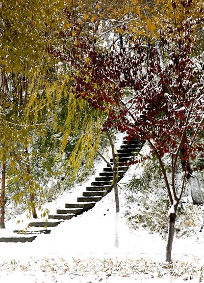 我满园的秋,濡润着落雪的秋啊!灿灿金叶,晶晶雪儿,为你不散的情缘,我愿抖落一生的心累,做你一世的相守。看,多少青青男女,多少沧桑过客,终是停留在你的足下,寻觅,守望。轻撷一叶落红,品茗一片落雪,你怎个分清她是秋,还是冬?又怎个知她是你的情缘,还是我的情缘……
