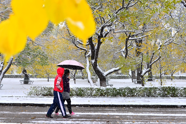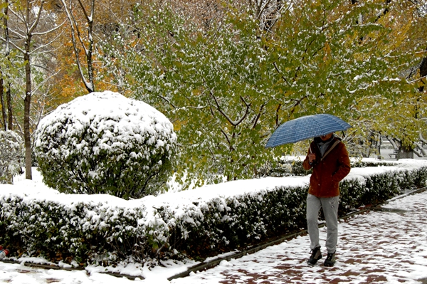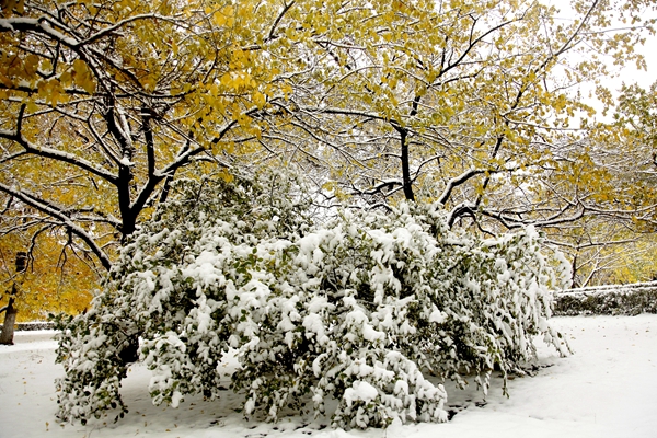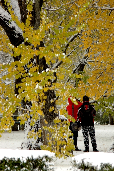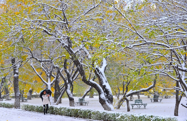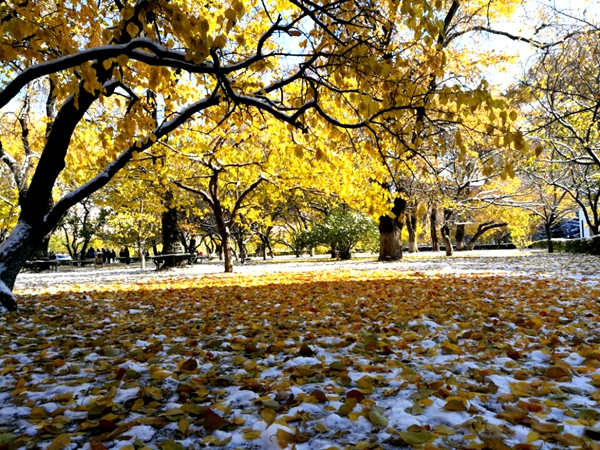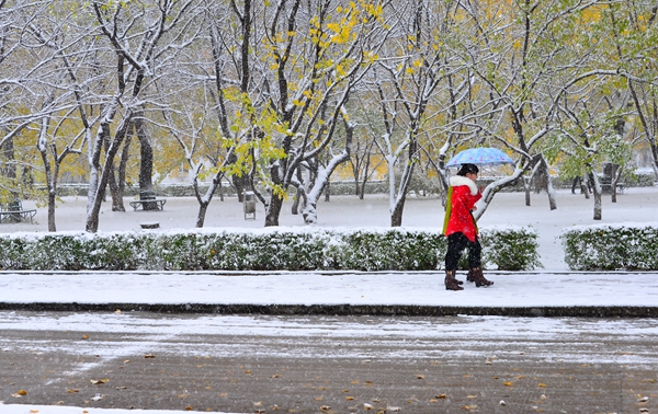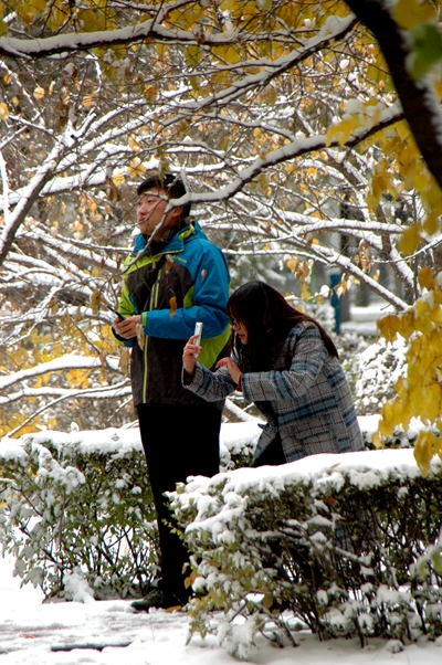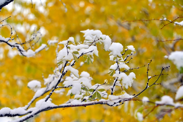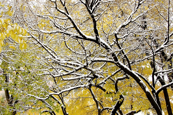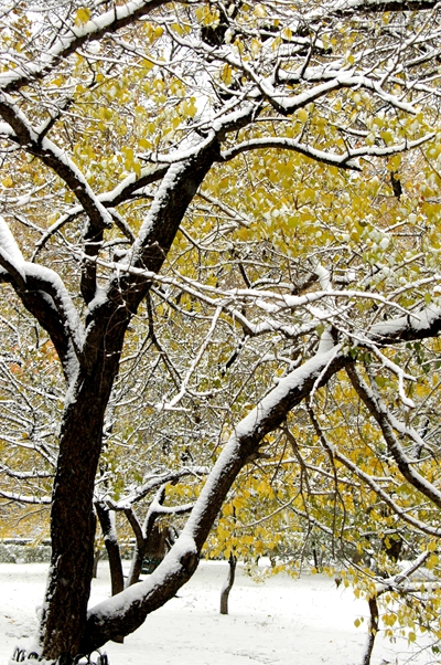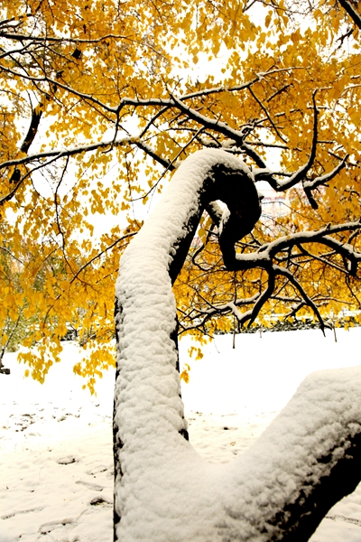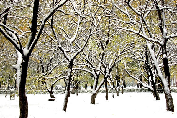 我满园的秋,濡润着落雪的秋啊!灿灿金叶,晶晶雪儿,为你不散的情缘,我愿抖落一生的心累,做你一世的相守。看,多少青青男女,多少沧桑过客,终是停留在你的足下,寻觅,守望。轻撷一叶落红,品茗一片落雪,你怎个分清她是秋,还是冬?又怎个知她是你的情缘,还是我的情缘……