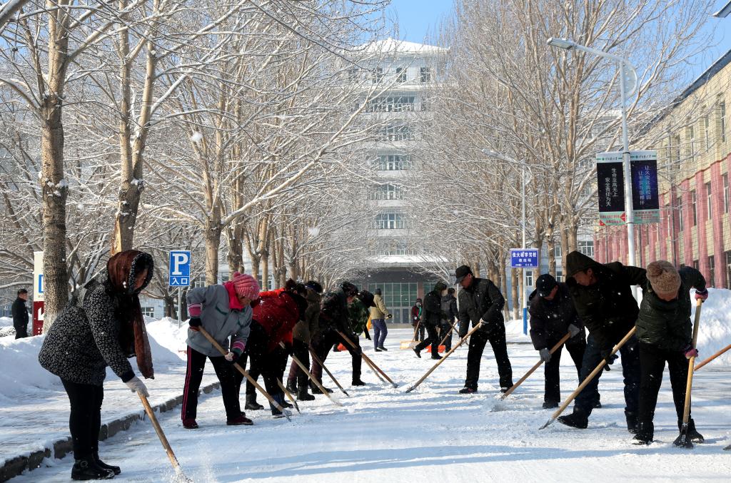 开学了,瑞雪送吉祥。带着新春的欣喜,教师们、职工们在开学第一天便投入到清雪的工作中,一声声新春的问候、一张张欣喜的笑脸、一幕幕合力铲雪的图景,劳动着,幸福的。幸福是奋斗出来的!奋斗的人生才是幸福的人生!新时代新作为,新年新气象,踏着春天的第一场瑞雪,相信我们每个人都将在奋斗中绽放美丽的人生。