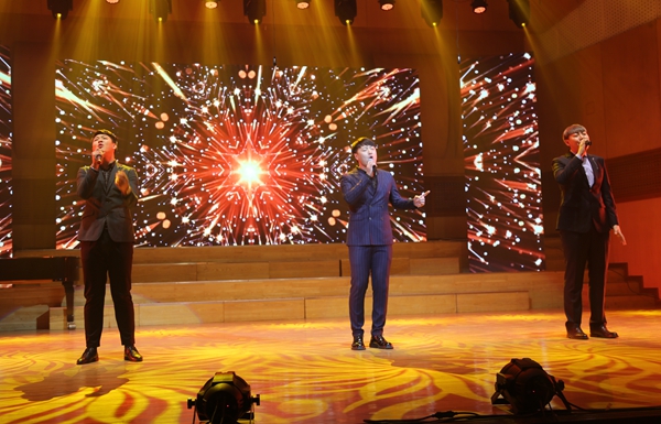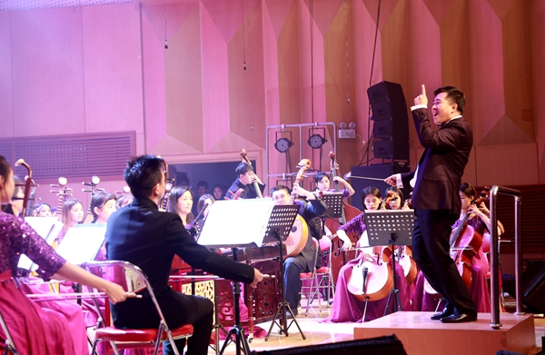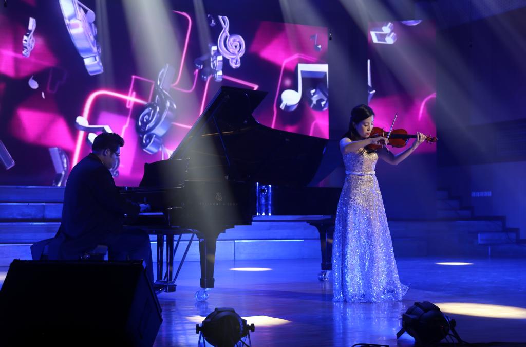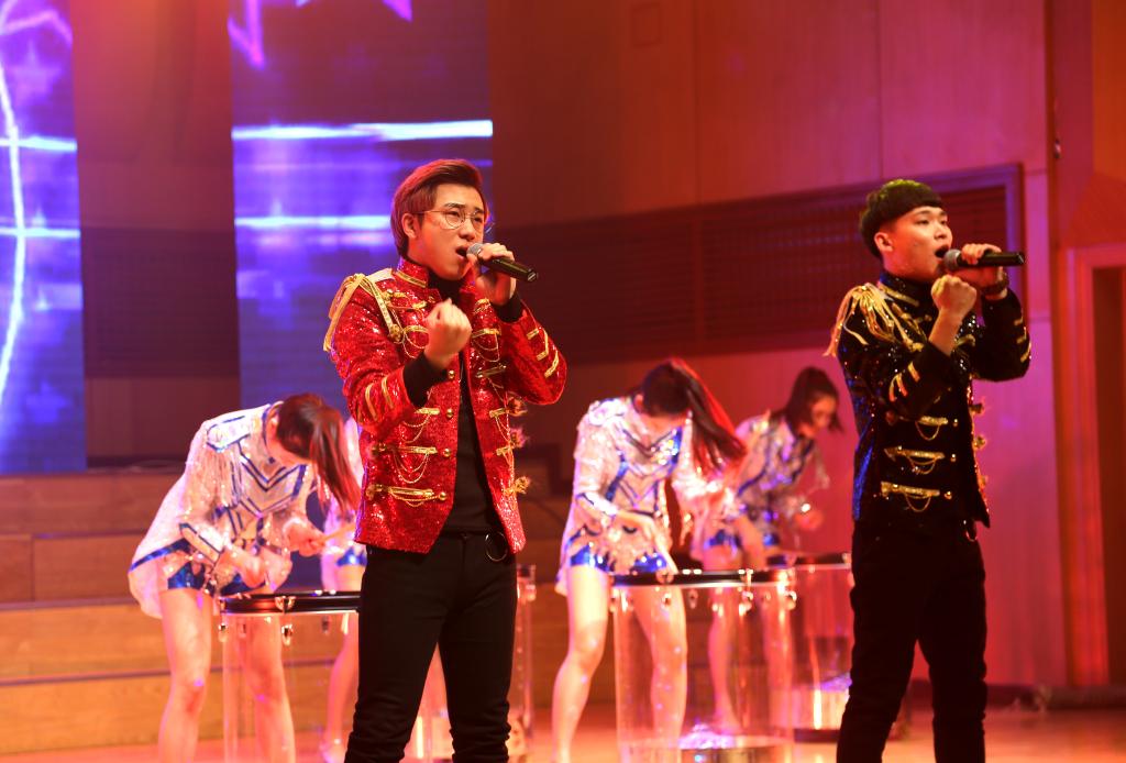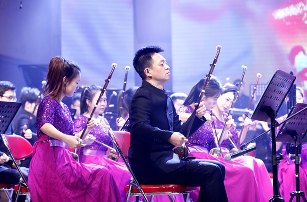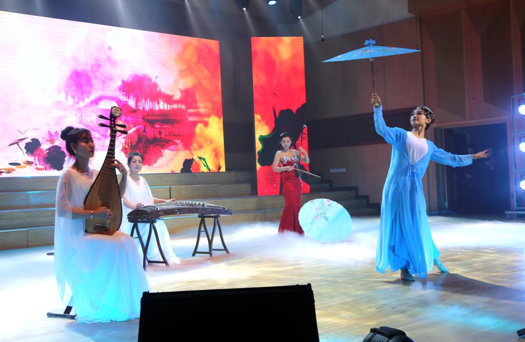 音乐会在音乐学院民族管弦乐团带来的民乐合奏拉开序幕,《龙腾虎跃》《瑶族舞曲》《翻身的日子》气势恢宏,催人奋进,充分显示了党的十九大为新时代开篇擘画的磅礴力量,彰显了我校70年来攻坚克难、不断超越的精神底质。整场音乐会共分为向快乐进发——流行歌舞,国色天香——民族乐器组合,蝶舞飞扬——西洋乐器组合,不忘初心、砥砺前行——歌曲联唱四个篇章。《最美的太阳》《红日》《像梦一样自由》等流行歌曲,在青年学子的激情演绎下,闪动着青春的活力。由琵琶、古筝与二胡组合演奏的《琵琶语》,琴弦悠扬,舒缓唯美,在纸伞、小桥流水、竹林等中国元素的相映下,如同一幅浓淡相宜、意境悠远的山水画卷,让观众们如醉如痴。在西洋乐器组合演奏中,世界名曲《她抬头仰望》《梁祝》《野蜂飞舞》在钢琴和小提琴倾情演奏下,或高亢、或舒缓,让观众感受到高雅艺术的魅力。音乐会最后在《不忘初心》《我和我的祖国》《浪淘沙?北戴河》《母亲是中华》等歌曲联唱中结束,表达了我校师生将在十九大精神的指引下,勠力同心,积极有为,奋力开拓发展新局面的坚强决心。