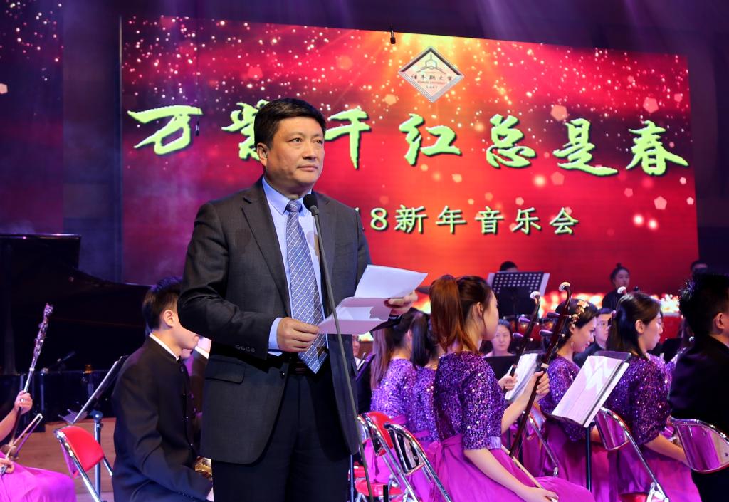 校长孟上九在音乐会上致辞,他首先代表学校向一年来坚守岗位、辛勤工作的广大教职员工,向一直关心和支持学校发展进步的离退休老干部表示衷心的感谢和新年的问候!