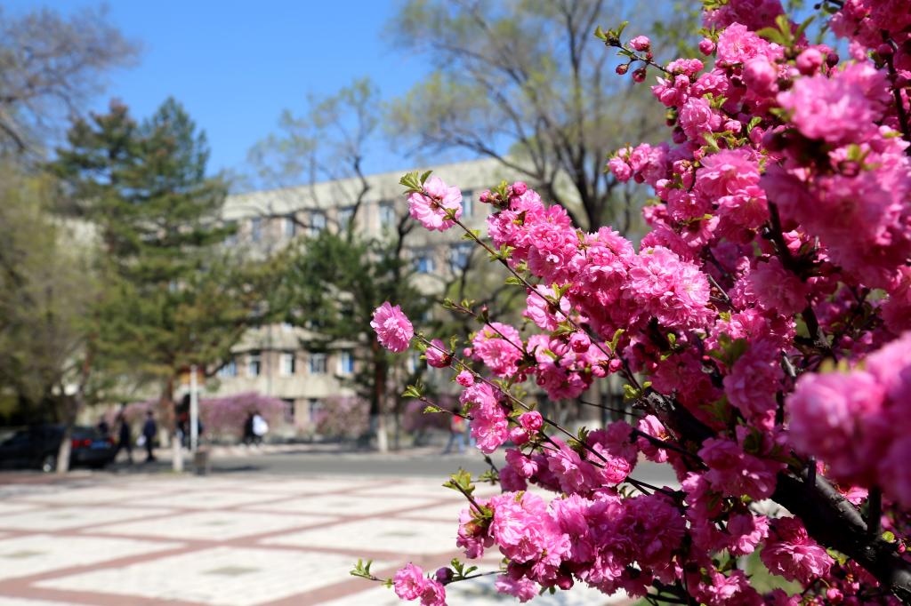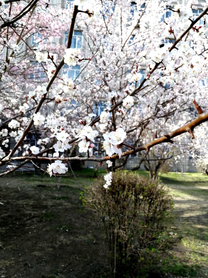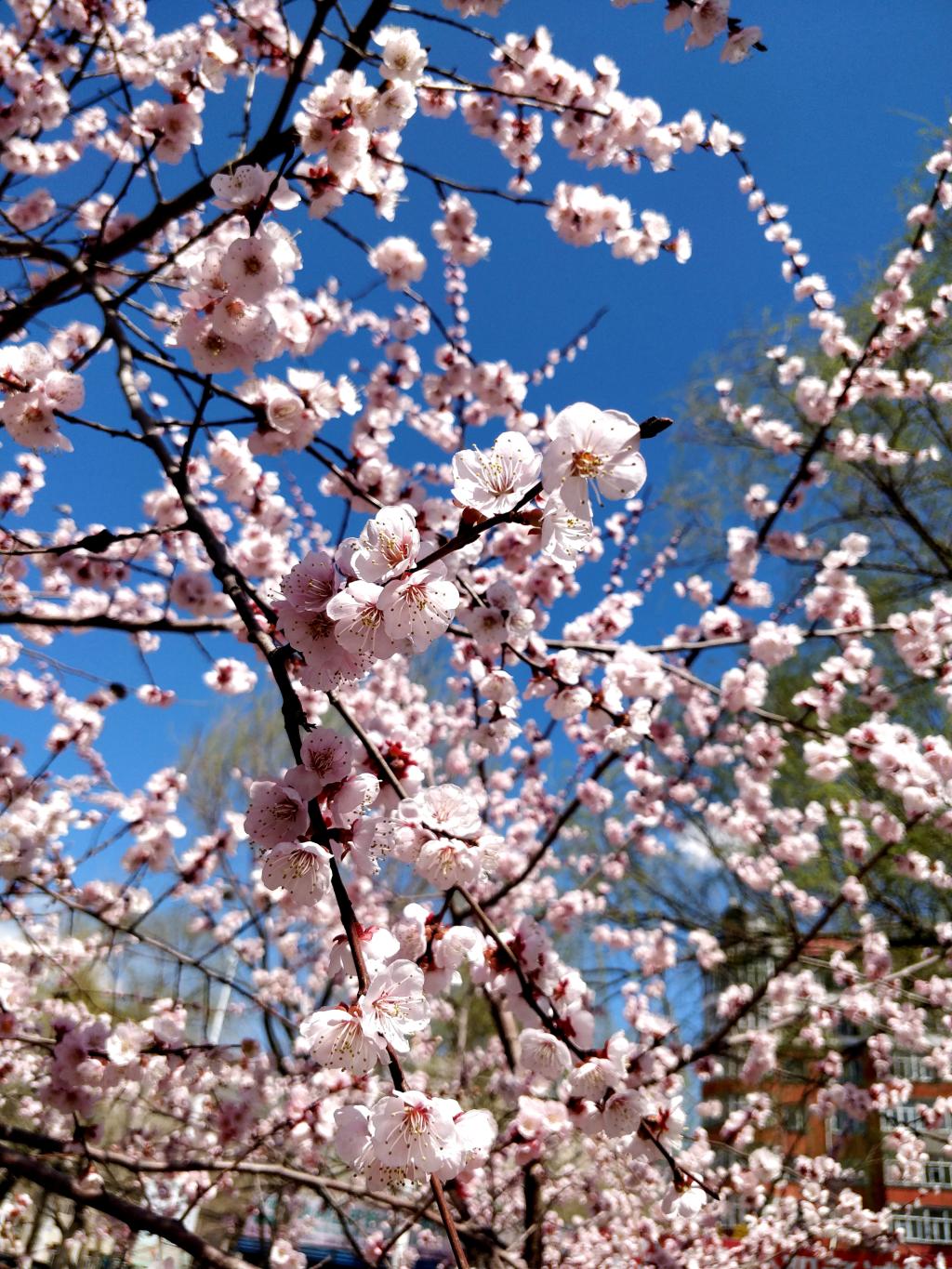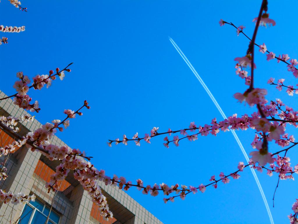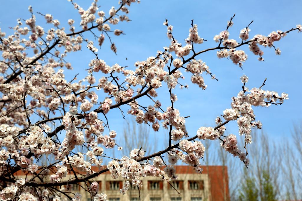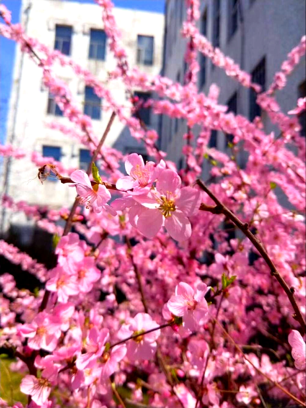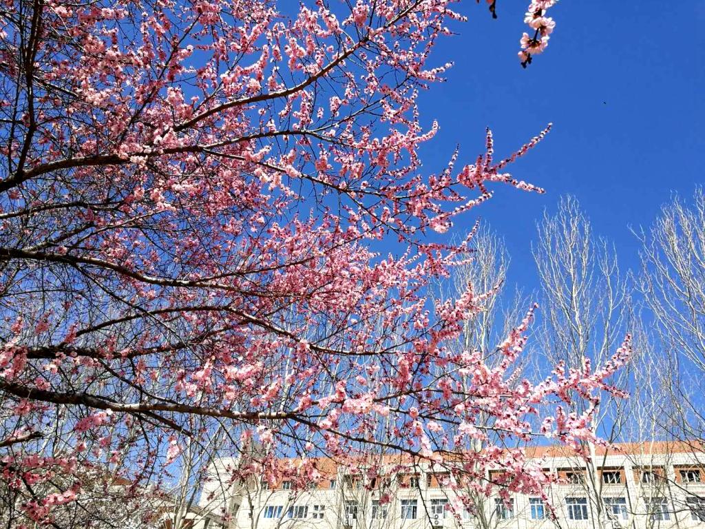 不经意间,在人们的盼望中,春已悄至。几场春风吹过,一树树、一枝枝连翘花、杏花、梨花、丁香花渐次开放,一团团、一簇簇,睁眼闭眼满是绚丽与芬芳,正如朱自清先生所言:你不让我,我不让你,都开满了花赶趟儿。花绽枝头,绿染校园,景色日新,盎然春意就在那里。