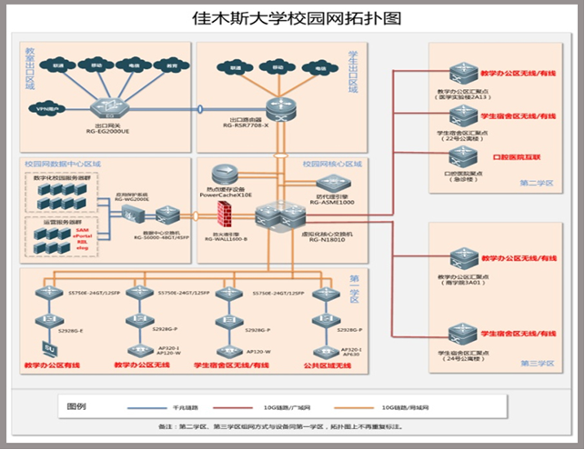 实现了校园网络全覆盖化。截至2017年8月,佳木斯大学校园网已覆盖学校三个学区,布设无线AP 6000台,信息点15000余个,实现“有线+无线”的全覆盖。校园网同时在线设备数达到2万余台,惠及师生3万余人,真正做到处处随心,实时联网。